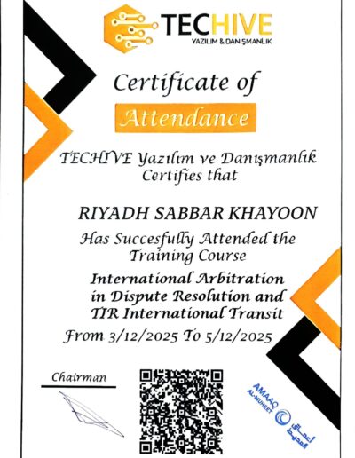 International Arbitration in Dispute Resolution and TIR International Transit course